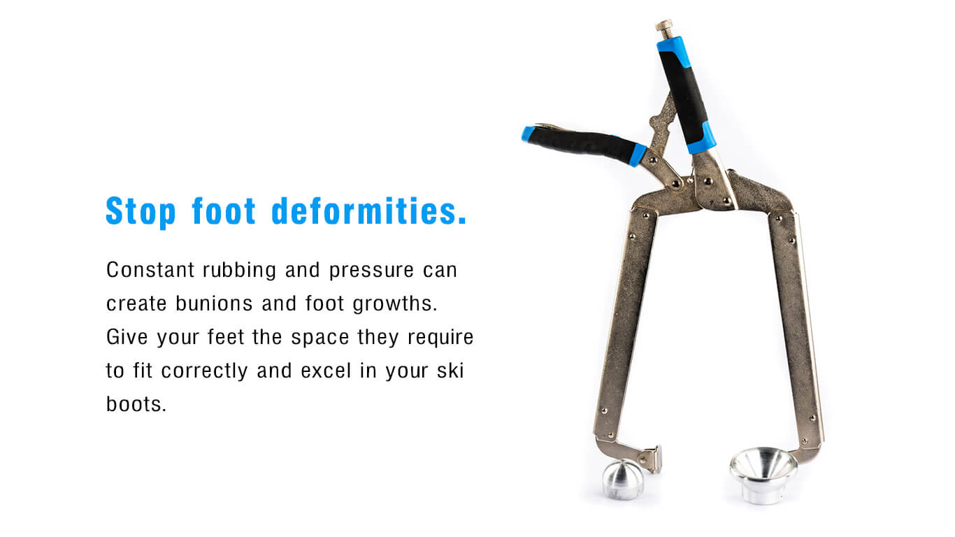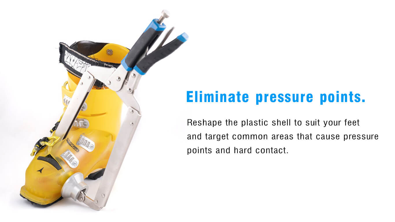 With this tool, you can punch out and reshape a ski boot to alleviate common problem areas. Eliminate your pressure points and take away the rubbing of your foot against the boot shell.