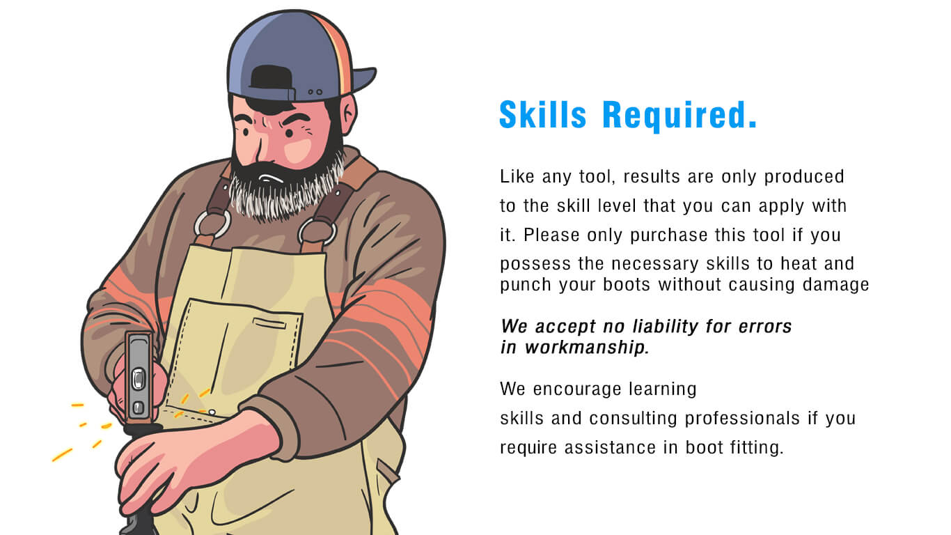 *DIY, Trade or Handyman skills are recommended to achieve a good result when punching your own ski boots. The responsibility is yours in terms of workmanship and technical ability. Please watch video below for detailed instruction. Questions about the ski boot punching process are welcomed -info@patriotfootbeds.com